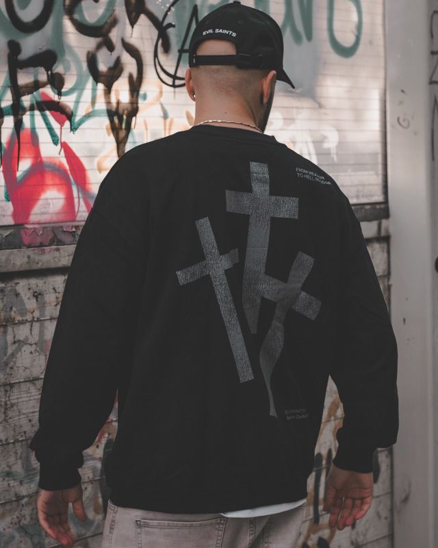 Dunkle Kunst, urbaner Style. Evil Saints vereint die raue Ästhetik der Tattoo-Szene mit der lässigen Attitüde der Streetwear. Jedes Kleidungsstück ist ein Kunstwerk, das von Hand gefertigt wird und deine Individualität unterstreicht. Trage deine Geschichte auf der Haut – und auf deiner Kleidung.