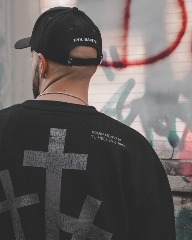 Dunkle Kunst, urbaner Style. Evil Saints vereint die raue Ästhetik der Tattoo-Szene mit der lässigen Attitüde der Streetwear. Jedes Kleidungsstück ist ein Kunstwerk, das von Hand gefertigt wird und deine Individualität unterstreicht. Trage deine Geschichte auf der Haut – und auf deiner Kleidung.