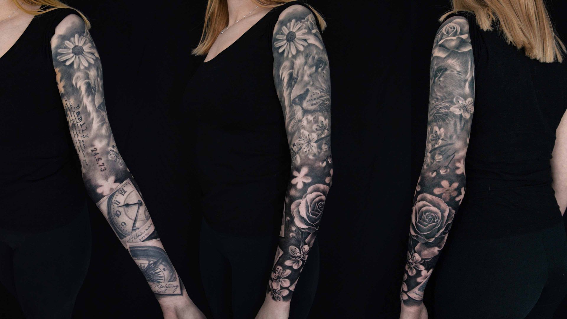 Black and Grey ist für mich die Kunst der Nuancen. Hier arbeite ich mit fließenden Übergängen, tiefen Kontrasten und verschiedenen Graustufen, um plastische und lebendige Motive zu erschaffen. Von düsterer Ästhetik bis hin zu weichen Schattierungen – entdecke hier, wie ich klassische